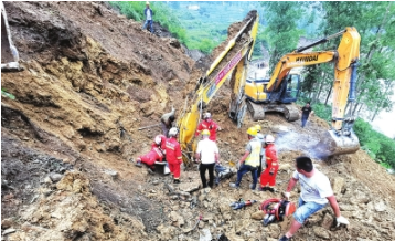 ![]() 本报讯(穆银龙 陈海堂 都市新闻记者廖尚海 摄影报道)10日17时许,铜仁市德江县荆角乡一公路施工地段发生垮塌,致挖掘机驾驶员被困。经当地消防部门两小时紧张营救,被困人员成功获救。 当天17点12分,德江县消防部门接到报警电话称,荆角乡角口一建筑工地发生塌方,致使1名挖掘机驾驶员被埋。 17时56分,消防救援人员到达现场后看到被埋挖掘机只有吊臂和驾驶室顶露在外面。据知情人介绍,事发时现场有4台挖掘机正在进行挖土作业,不料垮塌突然发生,滚落的土石方正好将其中一台挖机大部分掩埋,只露出了吊臂部分。事发后,现场另外3台挖掘机的工友随即对被埋挖掘机周边的沙土进行清理。 消防救援人员立即准备利用破拆工具将被埋挖掘机的驾驶室顶棚破拆开后,直接将被困人员救出。但现场情况极其危险,被困人员和挖掘机上部约上千方土石方岌岌可危,随时有一冲而下的可能。但消防救援人员及工友根本来不及考虑太多,他们在救援指挥的部署下,对周边土石方进行简单处理后,立即进入被困位置进行施救。经过努力,驾驶室顶部终于被打开,而新的情况再度发生:被困驾驶员虽然神志清楚,但除了头和手露出外,胸部以下全部被泥沙埋住,不能动弹。 “哗啦……”救援过程中,上方一小部分土石方突然滚落下来,正在作业的消防救援人员李作和一工友发现险情后,两人毅然用身体挡住泥石,避免泥沙再次进入驾驶室。 由于救援空间狭小,且现场随时有可能发生二次垮塌,为了尽快将被困人员救出,救援人员相互配合,时刻监视救援周边情况。同时,利用挖掘机挖斗、挡板做支撑保护防止再次垮塌。 经过现场救援人员近两个小时不遗余力紧张营救,驾驶室内泥沙被清理干净,驾驶员终于被成功救出并立即送医救治。 据介绍,被困人员获救不久,挖掘机上方的土石方再次发生垮塌,先前进行救援作业的位置已完全被掩埋。 |