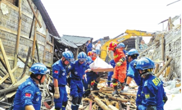 ![]() ![]() 都市新闻记者 赵惠 黄桂花 邱凌峰 黄芷昕 摄影报道 18日早上5:36分,夏延友成为最早进入震中的贵州救援队队员。 夏延友来自贵州蓝天救援队。他17日到达四川省宜宾市叙永县,原本是准备次日帮邻居的儿子接亲。而他的车,是主婚车,因此被漂亮的鲜花装扮一新。 不料,地震袭来,婚礼和救援之间他选择了后者,在和贵州蓝天救援队取得联系后,18日02:39分,他直接将扎着鲜花的婚车,开到了110公里外的广宁县双河镇震中救援现场。 地震发生后,贵州都市报及时派出记者赵惠、黄桂花、邱凌峰、黄芷昕组成前线报道组,18日凌晨1点跟随贵州蓝天救援队一同从贵阳启程出发赶赴地震灾区,经过7小时的跋涉,8时50分抵达地震中心长宁县双河镇。用手中的镜头、用声音、用手中的笔,实时报道救灾情况。 ![]() 救援队员接亲,却把婚车开进了震区 今年是夏延友加入贵州蓝天救援队的第3个年头。“我是个体经营者,突然有一天,我觉得自己在虚度人生,因为每天除了玩还是玩,我就想着要做点有意义的事情。” 后来,在和车友聊天时,贵州蓝天救援队的邓军推荐夏延友加入了这个大家庭。而这一做,就到了现在,夏延友的工作重心,也从个体经营变成了救援。 18日早上5:36分,夏延友成为最早进入震中的贵州救援队队员。 他提前一天到达四川省宜宾市叙永县,准备次日帮邻居的儿子接亲。而他的车,是主婚车,因此被漂亮的鲜花装扮一新。 不料,地震袭来。在和贵州蓝天救援队取得联系后,18日02:39分,他直接将扎着鲜花的婚车,开到了110公里外的广宁县双河镇震中救援现场。 “婚礼和救援之间,我必须选择救援,就只能给邻居说抱歉,他也很理解。”夏延友说,来双河镇的路上雨势突然变大,能见度较低,就连婚车上的鲜花都被打落了很多朵。 在这种情况下,再加上高速封路,为了给后续救援部队探路,不熟悉路的夏延友被导航带下收费站好几次,只是为了让后续救援部队到灾区的速度快一点,再快一点。 5:36分,夏延友到达双河镇。他步行到葡萄井村,遇到消防救援人员正在搜救一所坍塌严重的房屋,从里面搜救出3名遇难者。夏延友便开始参与搜救。 这栋严重倒塌的房屋在葡萄井村八队,是一栋2层高、6间房的砖房。屋主50多岁的李秀明夫妇及六七岁的孙子不幸身亡,李秀明家其他伤者被送往医院救治。 51岁的汪荣和李秀明家做了30来年的邻居,平常两家人来往很密切。早上9点半左右,贵州都市报记者赶到现场时,汪荣告诉记者,17日晚震撼强烈,房屋来回晃动,“从来没有经历过这样吓人的事情。” 汪荣70多岁的婆婆吓得想往外面跑,她见状赶紧拉住婆婆,在沙发上坐了下来,打算等地震过去再出门。“但是摇晃得太厉害,沙发都坐不稳。”后来,听到外面呼救,汪荣和婆婆出门看到,邻居家房子已成废墟。不久后汪荣得知,熟悉的3位邻居已天人永隔。 看到遇难者家属的眼神,我的眼眶湿润了 早上9点到12点,营救杜采同耗时3个小时。 有人统计了一下,仅仅在10多分钟时间里,就产生了余震24次,最大的震级达到5.3级。 王毅是贵州蓝天救援队队长。早上8点50分,贵州蓝天救援队15名队员到达震中双河镇,成为较早到达震区的救援力量。车辆刚开到鸿程驾校门口,就看到重庆合川蓝天救援队往双河镇的东街方向跑去。 双河镇东街因为老旧房屋较多,成为这次地震最为严重的区域之一。 09:07,夏延友与相继赶到的贵州蓝天、重庆合川蓝天救援队汇合,一同扎入到东街的房屋垮塌救援中去。 东街25号是一栋砖木结构的3层楼房。地震造成房屋垮塌,变成一片废墟。屋主两名成年人被困,女主人在17日晚12点多获救,而男主人55岁的杜采同依旧无法脱身。 “救援难度很大。就好比一个‘汉堡包’,男子躺在二楼楼板上,胸部被三楼的楼板及房屋的圈梁倾斜处狠狠地压住,楼板和圈梁的重量加起来估计有20来吨。”王毅说。 房屋结构不稳定,再加上余震不断,随时有二次坍塌的危险。20多个救援队员在经过数次尝试,最后确定了动用挖掘机的方案。 第一次,尝试用挖掘机将圈梁直接抬升。不料,挖掘机的金属臂很滑,无法抓住圈梁。 第二次,撬开圈梁,露出钢筋,再次动用金属臂抓住圈梁里的钢筋。挖掘机向上抬升,终于成功。 遗憾的是,当杜采同被救出时,已无生命迹象。 全体救援队员脱帽站成一排,低头,默哀。 夏延友说,结束搜救后,遇难者亲属还忍着悲痛对蓝天救援队的21名队员和4名消防队员表示了感谢。“每当看到遇难者家属悲痛的眼神,我的眼眶就湿润了。”夏延友看着远处,回忆着当时的搜救场面。 一张大塑料布,为600师生挡雨 “我相信我就是我,我相信明天,我相信青春没有地平线……有你在我身边,让生活更新鲜……” 18日凌晨,一首《我相信》突然响彻双河镇双河中学上空。不知道是从哪个班开始,起初歌声很小,似乎从某一个角落里传来。但不一会儿,歌声越来越大,从一个班级到两个班级、再到三个班级……最后,变成了全校师生大合唱。 雨也越来越大,打在每个人头发上、脸上、身上…… 当时已是就寝时间,但因为急于从寝室跑出来,女生们大多穿着睡衣,男生们穿着睡裤。雨水打在身上,寒冷开始袭来。 “我和其他班主任见了,担心孩子们冻感冒,想去寝室给他们拿衣服。但是,孩子们拼命阻止,不许我们去。”高二(1)班班主任刘庆说,教学楼和寝室楼都已经开裂,学生们担心他们发生危险,宁