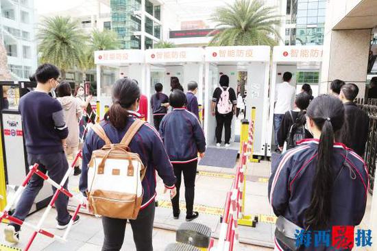 ![]() 厦门网讯 (海西晨报记者 许蔚菡) 经省委、省政府同意并报教育部备案,福建省自4月7日起将分类分批、错时错峰开学!其中,高三年级原则上于4月7日先行同步开学。 昨日上午,福建省教育厅召开2020年春季学期中小学开学工作视频会,部署春季学期中小学开学准备工作、学校安全大排查大整治工作、教育脱贫攻坚工作。 其他年级时间另定 根据省教育厅的通知,初三年级和中小学(含中职学校、特教学校)除小学一、二年级外的其他年级,视高三开学推进及疫情防控情况再分批跟进开学,具体时间和方案按分级管理原则由各设区市或县(市、区)疫情防控工作领导指挥机构批准后实施;高校、小学一年级和二年级、幼儿园具体开学时间另行研究确定。 通知表示,各地各校要严格落实教育部关于“疫情没有得到基本控制前不开学、学校基本防控条件不具备不开学、师生和校园公共卫生安全得不到切实保障不开学”的要求,按照省委省政府部署和省教育厅要求,切实做好防疫物资、人员培训、安全排查等开学准备工作,坚持疫情防控和开学准备“两手抓”,确保分批开学有序推进。 省教育厅视频会议后,厦门市立即召开2020年春季学期中小学开学工作会。 双十进行入校防疫演练 ![]() 3月26日,双十中学枋湖校区进行入校防疫演练。进入校园前,要先在学校大门前指定排队区等候。 记者 唐光峰 摄 ![]() 等候时每人须间隔1米。 记者 唐光峰 摄 ![]() 入校前要先进入智能防疫测温区进行人脸识别、信息比对和体温检测,体温正常方可入校。 记者 唐光峰 摄 ![]() 双十中学食堂设分隔就餐区。 记者 唐光峰 摄 据悉,高三年级4月7日开学后,初中、小学、中职、高校也将视情况相继开学复学,教育系统将成为厦门全市防控工作的焦点和重点,打好开学防“疫”战至关重要。 为加强疫情防控,保障开学后学习、生活有序进行。厦门多所学校正积极准备迎接开学的到来。 昨日下午,双十中学枋湖校区进行了入校防疫演练,为复学做好充足准备:学生进入校园前,要先在指定学校大门前的等候排队区,按照每人间隔1米的距离按顺序依次进入智能防疫测温区进行人脸识别、信息比对和体温检测,体温正常的学生方可进入校园,如果出现体温异常(高于37.2℃),智能防疫测温仪会闪烁红灯以示警报,这时学生将由晨午检人员引导至观察点,先作几分钟观察后再次检测,若体温还是偏高,将需要到临时隔离区进行进一步处理。 据悉,对于开学前、开学时、开学后的校园疫情防控保卫战,各校均已根据厦门市教育局出台的《开学防控工作预案》和《厦门市学校健康防护手册》,一一对照专项监督检查要点,逐项逐条开展自查自评,做好校园环境、师生健康、医务保障等各项环节的保障工作。 |